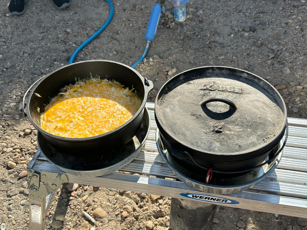 Our leaders cooked us a mountain man breakfast in cast iron pots. It was hash browns, sausage, eggs and cheese layered together and served with a fresh salsa. Yum!