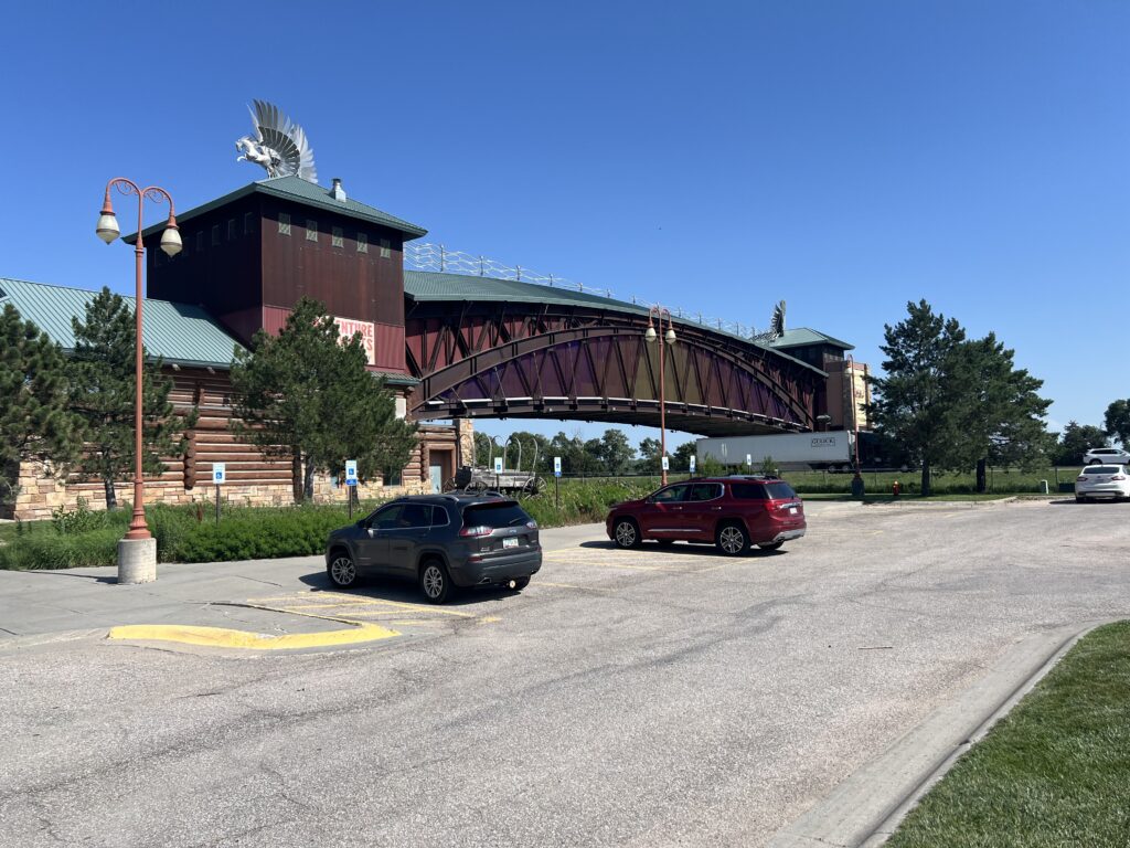 The last major adventure in Kearney (pronounced Carney…?) was a visit to the Archway. The Archway is an exhibit of the Great Platte River Journey taken by so many pioneers. The unusual thing is that it runs OVER highway I80, created in 2000, it celebrates this area. You enter on one side and walk along amidst exhibits of life on the Platte River across the highway. There is a tower where you can spy on the automobiles on the highway. Fairly unusual exhibit!