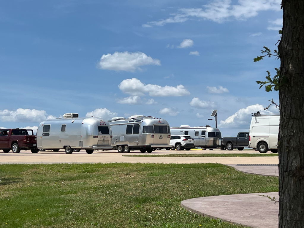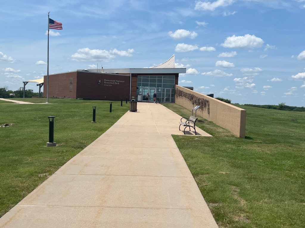 Today (June 15th) we stopped by the Homestead National Monument of America while enroute to the Double Nickle Campground. This is a tribute to those pioneers that made the voluntary trek across the entire country in hopes of finding a better life and a little bit of land. There are 20 rigs in our caravan, so when we visit a place the parking lot fills up in a hurry.